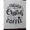 White tote bag, 5oz cotton. with a Fuelled By Crystals & Coffee design.This may be available with a different colour print depending on availability